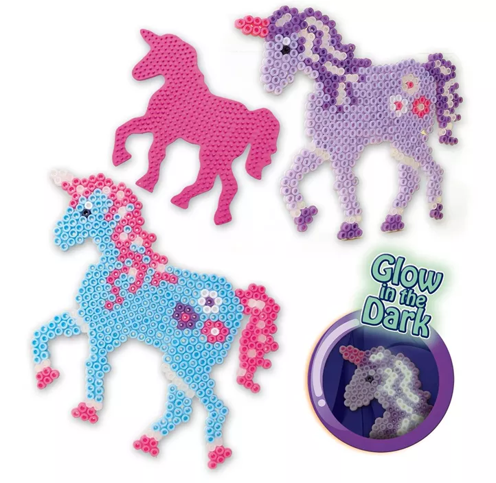 Ein zusätzlicher Pluspunkt dieser magischen Bügelperlen: Sie sind super einfach in der Handhabung. Einfach die farbenfrohen Perlen auf die gewünschte Vorlage setzen, bügeln und schon entsteht ein leuchtendes Meisterwerk. Nach getaner Arbeit lässt sich der Erfolg mit einem magisch leuchtenden Einhorn im Dunkeln bewundern.