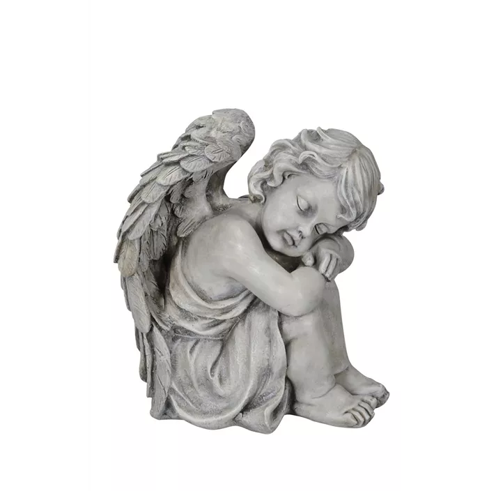 Die liebevoll angelegten Details, wie Gesichtszüge, Gewand und Flügel, schaffen eine beruhigende und hoffnungsvolle Atmosphäre. Mit einer Größe von ca. 50 cm ist er groß genug, um wahrnehmbar, aber nicht aufdringlich zu sein.