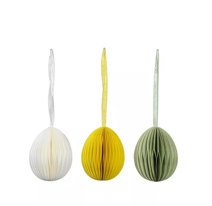 Ei zum Hängen aus Papier (weiß, gelb, grün)