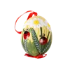 Mit Liebe zum Detail handbemalt, zeigt dieses Osterei eine lebendige Szene einer Frühlingswiese, übersät mit einer Vielzahl von farbenfrohen Blumen. Durch die Kombination verschiedener Techniken entsteht so ein beeindruckender Effekt, der das Ei fast zum Leben erweckt. Der use der bunten Frühlingsblumen zieht sofort Blicke auf sich und lässt das Herz jedes Gartenliebhabers höher schlagen.