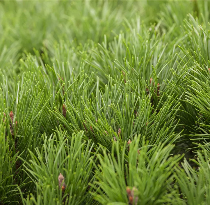 Ihre Nadeln machen die Niedrige Krüppelkiefer dabei zu einem schönen Anblick. Diese haben eine mittelgrüne Farbe. Ab Oktober sind zudem ihre kegelförmigen, braun-gelben Zapfen ausgereift. Mit 4 bis 5 cm Jahreszuwachs entwickelt sie sich mit der Zeit zu einem kissenförmigen und rundlichen Gehölz. Frei wachsend kann sie so bis zu 1,5 m hoch und 3 m breit werden. Die Niedrige Krüppelkiefer erweist sich als sehr pflegeleicht und stellt kaum Ansprüche an die Erde, in der sie wächst. Ihr Wasserbedarf ist moderat, besonders in trockenen Zeiten solltest du jedoch auf eine ausreichende Wasserversorgung achten. Eine sonnige bis halbschattige Lage ist optimal für diese Konifere.