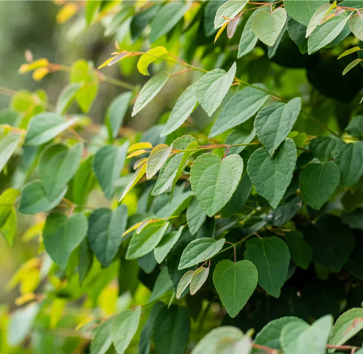 Als sommergrünes Solitärgehölz ist der Judasblattbaum (Cercidiphyllum japonicum) besonders attraktiv. Doch auch als Ziergehölz in Kombination mit anderen Pflanzen kann er überzeugen. Seine grünen, matten, rundlichen Blätter geben ihm seinen einzigartigen Charakter. Sein Blattaustrieb ist dabei noch auffällig kupferbraun. Im Herbst zeigen seine Blätter zudem schöne orangegelbe Farben. Mit 20 bis 30 cm Jahreszuwachs entwickelt er sich mit der Zeit zu einem schirmförmigen und malerischen Gehölz und kann bis zu 12 m hoch und 6 m breit werden. Der Judasblattbaum bevorzugt eine durchlässige, humose, nährstoffreiche, sandige und lehmige Erde. Besonders in trockenen Zeiten solltest du auf eine ausreichende Wasserversorgung achten, sonst ist sein Wasserbedarf eher moderat. Eine sonnige bis halbschattige Lage ist optimal für dieses Laubgehölz.