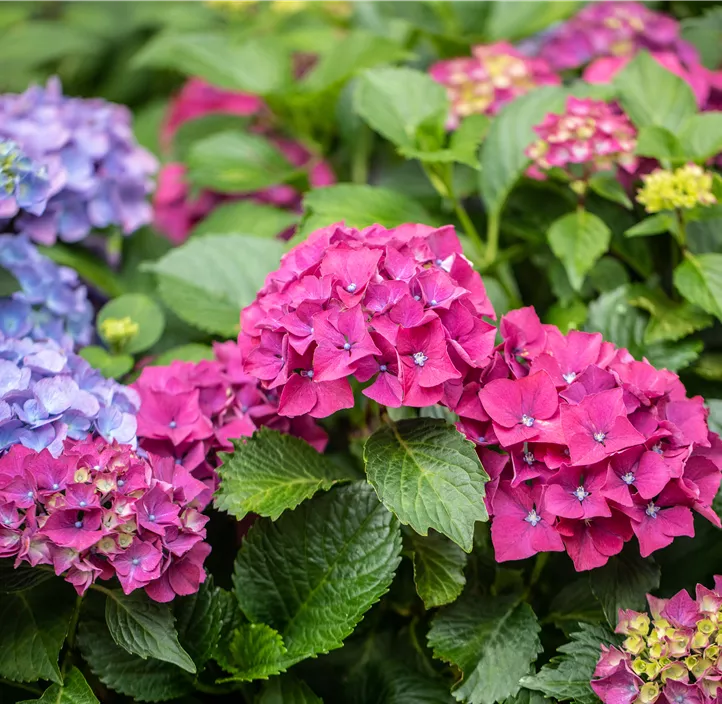 Ihre mittelgrünen, eiförmigen Blätter mit ihrem gesägten Rand geben ihr ihren einzigartigen Charakter. Die Blütezeit liegt zwischen Juni und Oktober. Dann trägt sie schalenförmige Blüten, die in Dolden angeordnet sind. Sie entwickelt sich zu einem buschigen und rundlichen Gehölz, das bis zu 90 cm hoch und 90 cm breit werden kann. Du kannst sie bei Bedarf problemlos in Form schneiden. Die beste Zeit dafür ist von Februar bis März. Die Bauernhortensie 'Forever & Ever'® bevorzugt eine humose und schwachsaure Erde. Ihr Wasserbedarf ist hoch, besonders in trockenen Zeiten solltest du daher auf eine ausreichende Wasserversorgung achten. Eine halbschattige bis schattige Lage ist optimal für dieses Laubgehölz. Bitte beachte beim Umgang mit dieser Pflanze, dass sie giftig ist.