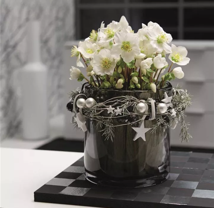 Für halbschattige bis schattige Plätze ist die laublose Christrose (Helleborus niger 'Christmas Carol') eine ansprechende Staude, die besonders lange blüht. Die schalenförmigen, weißen Blüten, die von Dezember bis März erblühen, verleihen ihr einen besonderen Charme. Sie eignet sich hervorragend für die Bepflanzung in Kübeln auf Balkon oder Terrasse und kann auch indoor in einem kühlen Raum stehen. Um lange Freude an der Christrose zu haben, solltest du sie in durchlässige Erde setzen und in trockenen Phasen regelmäßig gießen.