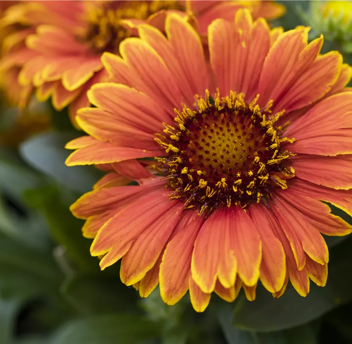 Für sonnige Standorte im Garten ist die Prärie-Kokardenblume SpinTop® 'Mango' (Gaillardia aristata) eine attraktive und pflegeleichte Staude, die sicher auch bei dir einen Platz finden wird. Besonders die gelb-orangenen Blüten, die von Juli bis September blühen, ziehen alle Blicke auf sich. Doch auch ihre lanzettlichen Blätter können sich sehen lassen. Mit ihrer mittelgrünen Blattfarbe macht sie auch außerhalb der Blütezeit eine gute Figur.