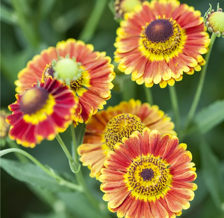 Für sonnige Standorte im Garten ist die Herbst-Sonnenbraut 'Mariachi Fuego' (Helenium autumnale) eine attraktive und pflegeleichte Staude, die sicher auch bei dir einen Platz finden wird. Es sind besonders die orangegelben, körbchenartigen Blüten, die von Juli bis September ihren Reiz ausmachen. Doch auch ihre lanzettlichen, gezähnten Blätter können sich sehen lassen.