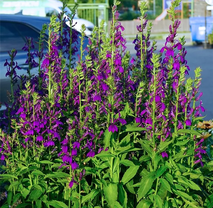 Für sonnige bis halbschattige Standorte im Garten ist die Lobelie 'Starship Blue' (Lobelia x speciosa) eine geeignete Staude, die als attraktiver Blickfang zum Einsatz kommen kann. Besonders die blauen Blüten, die von August bis September blühen, machen ihren Reiz aus. Doch auch ihre lanzettlichen Blätter können sich sehen lassen. Mit ihrer mittelgrünen Blattfarbe macht diese Staude auch außerhalb der Blütezeit eine ansehnliche Erscheinung.