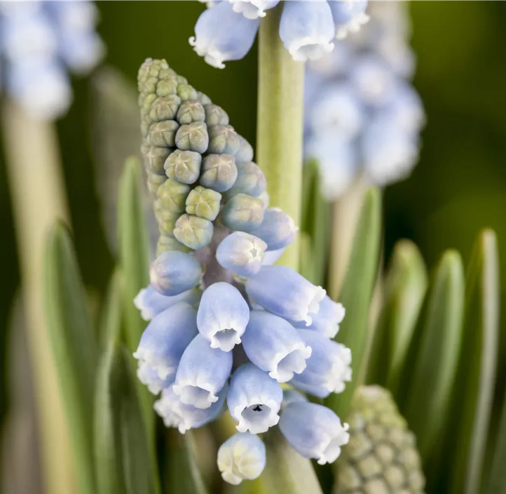 Die Traubenhyazinthe (Muscari) bringt ab März Frühlingsstimmung mit ihren Blüten in Blau oder Weiß. Ihre dunkelgrünen Blätter komplettieren das Erscheinungsbild der Pflanze. Mit einer Wuchshöhe von etwa 20 cm und einer Breite von 15 cm lässt sie sich besonders gut mit anderen Pflanzen kombinieren, wie der Gewöhnlichen Kuhschelle und dem Frühlings-Adonisröschen. Auch als Kübelpflanze kannst du dich an ihr erfreuen. Die Traubenhyazinthe bevorzugt durchlässige und lockere Erde und hat einen moderaten Wasserbedarf. Besonders in trockenen Zeiten solltest du dennoch ausreichend gießen. Für einen gesunden Wuchs ist außerdem ein sonniger bis halbschattiger Standort optimal.