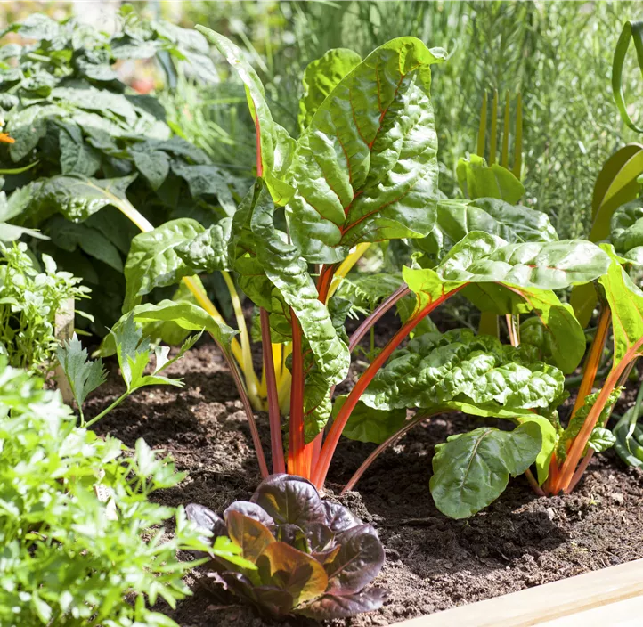 Aus eigener Ernte schmeckt doch einfach am besten. Deshalb solltest du den Blatt-Mangold (Beta vulgaris) unbedingt einmal selbst anbauen. Seine Blätter und Blattstiele haben einen pikanten Geschmack und eignen sich für viele leckere Gerichte. Ernten kannst du, wenn die Pflanze eine Höhe von etwa 30 bis 60 cm erreicht hat. Damit dein Blatt-Mangold gut wächst und du eine reiche Ernte bekommst, solltest du ihn in durchlässige, lockere, nährstoffreiche Erde an einem sonnigen Standort pflanzen. Gieße regelmäßig, denn der Mangold hat einen hohen Wasserbedarf.
