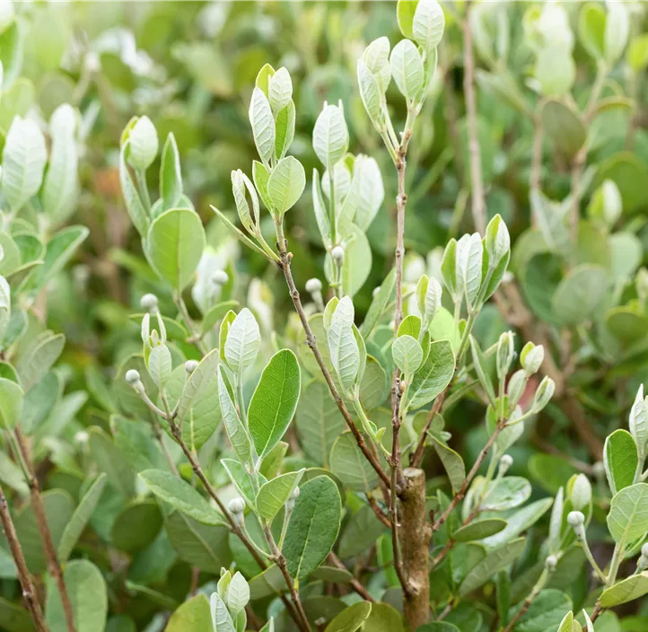 Als immergrüne Kübelpflanze verleiht der brasilianische Guavenbusch (Acca sellowiana) deinem Balkon, der Terrasse oder dem Wintergarten einen Hauch südamerikanischer Exotik. Mit seinen purpurroten bis weißen Blüten zieht er alle Blicke auf sich und wird schnell zum besonderen Highlight. Dank seines aufrechten, strauchartigen Wuchses erreicht die Ananas-Guave eine Höhe von bis zu 2 Metern und eine Breite von etwa 1,5 Metern. Für ein gesundes Wachstum benötigt die Pflanze vor allem einen sonnigen Standort und eine gleichmäßige Wasserversorgung. Achte darauf, den Wurzelbereich stets leicht feucht zu halten – Staunässe sollte jedoch vermieden werden.