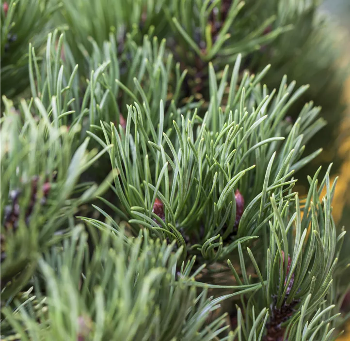 Ihre Nadeln machen die Berg-Kiefer 'Carsten's Wintergold' dabei zu einem besonders schönen Anblick. Der hellgelbe Austrieb färbt sich zum Sommer mittelgrün. Im Winter wiederum zeigen die Nadeln goldgelbe Farben. Ab Oktober sind zudem ihre kegelförmigen, braun-gelben Zapfen ausgereift. Mit 6 bis 7 cm Jahreszuwachs entwickelt sie sich mit der Zeit zu einem dichten und kompakten Gehölz und kann bis zu 3 m hoch und 6 m breit werden. Die Berg-Kiefer 'Carsten's Wintergold' erweist sich als sehr pflegeleicht und stellt kaum Ansprüche an die Erde, in der sie wächst. Ihr Wasserbedarf ist moderat, besonders in trockenen Zeiten solltest du jedoch auf eine ausreichende Wasserversorgung achten. Eine sonnige bis halbschattige Lage ist optimal für diese Konifere.