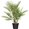 Für etwas exotischen Flair auf Balkon, Terrasse oder in deinem Wintergarten sorgt die Zwergpalme (Chamaerops humilis) als immergrüne Kübelpflanze im Handumdrehen. Dabei kannst du gar nicht viel verkehrt machen, denn sie ist pflegeleicht. Ihre tief geschlitzten Blätter machen sie mit ihrer schönen, grau-grünen Farbe zu einem Blickfang. Durch ihren aufrechten und ausladenden Wuchs sind bei dieser Pflanze Wuchshöhen von etwa 1,2 m und Breiten von etwa 1,2 m möglich. Um sich gut zu entwickeln, braucht die Zwergpalme nur eine durchlässige, lockere, sandige und lehmige Erde sowie einen sonnigen Standort und eine ausreichende Wasserversorgung. Das heißt, du solltest so gießen, dass der Wurzelbereich nicht austrocknet, aber auch keine Staunässe entsteht. Sie verträgt Temperaturen bis minimal -13 °C, somit gilt sie als nicht gesichert frosthart und sollte einen entsprechenden Winterschutz bekommen. Als Kübelpflanze kann sie auch an einem frostfreien, hellen Ort überwintert werden.