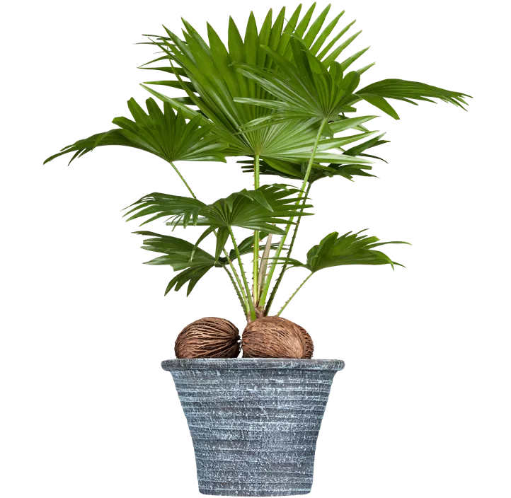 Die tief geschlitzten Blätter der Livistonie (Livistona rotundifolia) stehen für natürliche Lebendigkeit. Ihre dunkelgrüne Farbe setzt dabei farbliche Akzente. Mit ihrem aufrechten Wuchs macht sie eine gute Figur und wird etwa 50 cm hoch sowie etwa 50 cm breit. Um die Faszination der Livistonie genießen zu können, solltest du beachten, dass sie keine Zugluft mag und kein direktes Sonnenlicht verträgt. Milde Morgen- oder Abendsonne sind noch in Ordnung, am besten ist aber indirektes Licht. Ebenso bevorzugt sie eine durchlässige und schwachsaure Erde. Ihr Wasserbedarf ist moderat, das heißt, die Erde darf auch schon mal antrocknen, bevor du wieder gießt. Überschüssiges Wasser muss jedoch gut abfließen können, da es sonst zu Staunässe kommen kann und die Wurzeln in Mitleidenschaft gezogen werden.