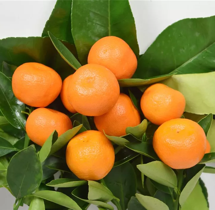 Es sind ihre Blätter, die aus ihr etwas Besonderes machen. Die gelb-grüne Blattfarbe lässt sie geradezu wie eine Blattschmuckpflanze erscheinen. Von April bis Juli trägt sie zudem weiße Blüten mit angenehmem Duft. Und auch die runden, orangefarbenen Früchte, die sich aus den Blüten entwickeln, sind ein Blickfang. Durch ihren strauchartigen Wuchs sind bei dieser Pflanze Wuchshöhen von etwa 2 m und Breiten von etwa 1,5 m möglich. Um sich gut zu entwickeln, braucht die Calamondin 'Variegata' nur eine durchlässige und saure Erde sowie einen sonnigen Standort und eine ausreichende Wasserversorgung. Das heißt, du solltest so gießen, dass der Wurzelbereich nicht austrocknet, aber auch keine Staunässe entsteht.