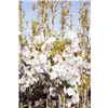 Ihre dunkelgrünen, eiförmigen Blätter mit ihrem gesägten Rand geben ihr ihren einzigartigen Charakter. Ihr Blattaustrieb ist dabei noch auffällig bronze. Im Herbst zeigen ihre Blätter zudem schöne orangegelbe Farben. Die Blütezeit liegt bei ihr zwischen April und Mai. Dann trägt sie schalenförmige, hellrosafarbene Blüten. Bemerkenswert ist auch der leichte Duft, der von ihnen ausgeht. Ein Hingucker sind auch ihre ovalen bis runden, schwarzen Früchte. Mit 20 bis 30 cm Jahreszuwachs entwickelt sie sich zu einem säulenförmigen und straffen Gehölz, das bis zu 7 m hoch und 2 m breit werden kann. Du kannst sie bei Bedarf problemlos in Form schneiden. Die beste Zeit dafür ist von Mai bis Juni. Die Japanische Säulenkirsche 'Amanogawa' bevorzugt eine durchlässige und kalkhaltige Erde. Besonders in trockenen Zeiten solltest du auf eine ausreichende Wasserversorgung achten, sonst ist ihr Wasserbedarf eher moderat. Eine sonnige Lage ist optimal für dieses Laubgehölz.
