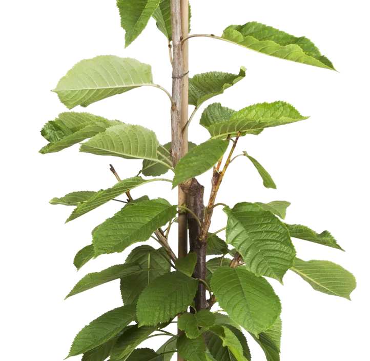 Von Ende Juni bis Mitte Juli ist Erntezeit: Die Säulen-Süßkirsche 'Sylvia'® (Prunus avium) ist reif und du kannst direkt in deinem eigenen Garten ernten! Die Kultur gelingt sogar in Kübeln und Töpfen auf Balkon oder Terrasse. Ihre großen, dunkelroten Früchte haben ein mittelfestes, rot-braunes Fruchtfleisch mit süßem, aromatischem Geschmack. Sie lassen sich zu vielen Köstlichkeiten, wie zum Beispiel Kuchen, verarbeiten. Auch leckere Säfte oder Konfitüren können daraus zubereitet werden. Doch ohne ihre weißen Blüten gibt es auch bei der Säulen-Süßkirsche 'Sylvia'® keine Früchte. Ihre Blütezeit liegt zwischen April und Mai, dann ist sie nicht nur ein schöner Anblick, sondern verbreitet auch einen angenehmen Duft. Damit sie sich gut entwickelt, solltest du sie in durchlässige, kalkhaltige, nährstoffreiche Erde an einem sonnigen bis halbschattigen, windgeschützten Standort pflanzen. Auch eine ausreichende und regelmäßige Wasserversorgung ist unerlässlich. Mit ihrem säulenförmigen Wuchs kann sie etwa 2 bis 3 Meter hoch und 30 bis 40 Zentimeter breit werden.
