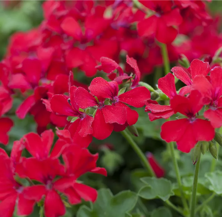 Durch ihren buschigen und aufrechten Wuchs sind bei dieser Pflanze Wuchshöhen von etwa 50 cm und Breiten von etwa 60 cm möglich. Du brauchst gar nicht viel tun, damit sich die Zonal-Pelargonie 'Caliente®' gut entwickelt. Sie braucht nur eine durchlässige und nährstoffreiche Erde sowie einen sonnigen bis halbschattigen, windgeschützten Standort und eine ausreichende Wasserversorgung. Das heißt, du solltest so gießen, dass der Wurzelbereich nicht austrocknet, aber auch keine Staunässe entsteht.
