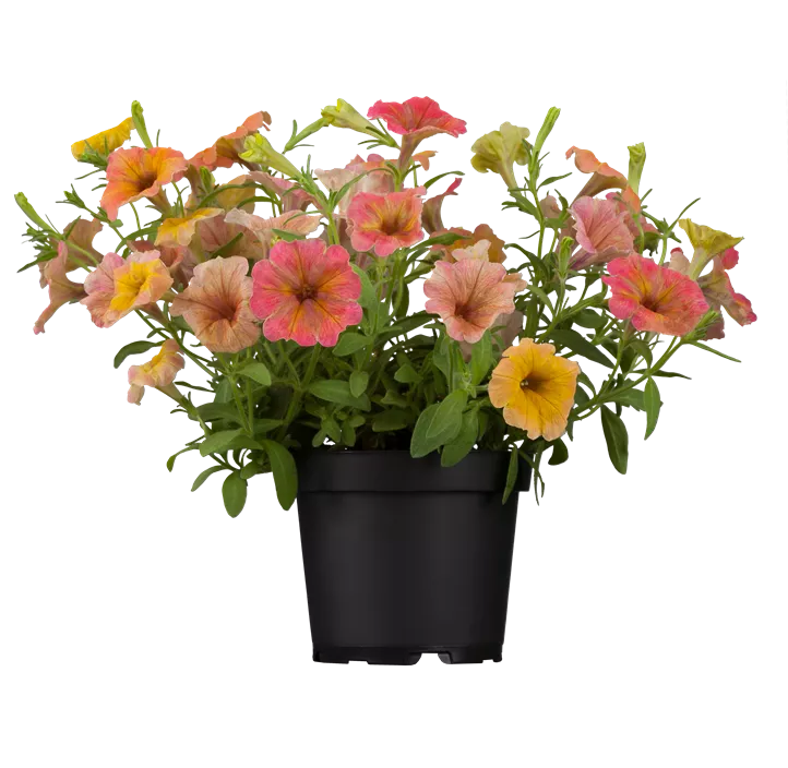Die leuchtend bunten, trichterförmigen Blüten der Petunie (Petunia) verwandeln Balkonkästen, Blumenkübel und Pflanzampeln über die gesamte Saison hinweg in wahre Blickfänger. Ihre Blätter tragen mit ihrem ansprechenden, mittelgrünen Farbton noch zusätzlich zur Gesamtwirkung bei. Diese Pflanze kann eine Wuchshöhe von etwa 60 cm und eine Breite von ebenfalls 60 cm erreichen. Damit sie optimal gedeiht, benötigt die Petunie lediglich einen durchlässigen, nährstoffreichen Boden, einen sonnigen, windgeschützten Platz und eine ausreichende Bewässerung. Achte darauf, den Wurzelbereich feucht zu halten, ohne jedoch Staunässe zu verursachen.