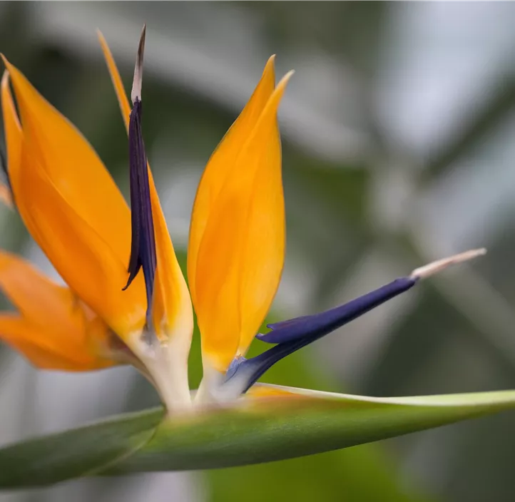 Die Blätter der Königs-Strelitzie (Strelitzia reginae) stehen für natürliche Lebendigkeit. Ihre blau-grüne Farbe setzt dabei schöne Farbakzente – und auch die leuchtend orangefarbenen Blüten sind ein echter Hingucker. Die Pflanze wird etwa 2 m hoch und rund 1,5 m breit.
