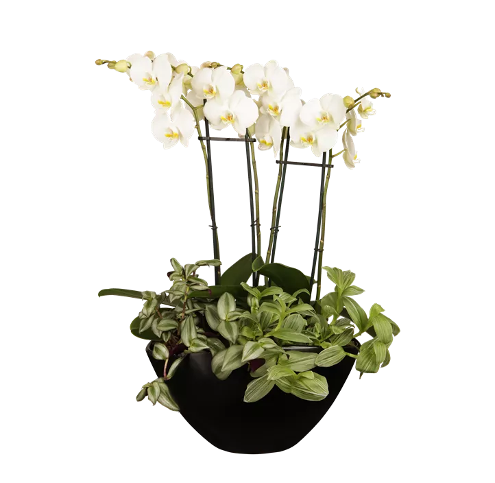Die Form der weißen, rosafarbenen, hellgelben, pinken oder dunkelroten, in Rispen angeordneten Blüten der Kleinblumigen Schmetterlingsorchidee (Phalaenopsis multiflora) ist einzigartig. Ihre lanzettlichen, dickfleischigen Blätter haben dazu eine ansehnlich dunkelgrüne Farbe. Mit ihrem aufrechten Wuchs macht sie eine gute Figur, dabei wird sie etwa 50 cm hoch. So faszinierend die Kleinblumige Schmetterlingsorchidee auch ist, so ist sie doch eine sehr pflegeleichte Orchidee. Du musst lediglich beachten, dass sie kein direktes Sonnenlicht verträgt. Milde Morgen- oder Abendsonne sind noch in Ordnung, am besten ist aber indirektes Licht. Ebenso bevorzugt sie eine durchlässige und lockere Erde. Ihr Wasserbedarf ist moderat und du solltest regelmäßig gießen. Überschüssiges Wasser muss jedoch gut abfließen können, da es sonst zu Staunässe kommen kann und die Wurzeln in Mitleidenschaft gezogen werden.