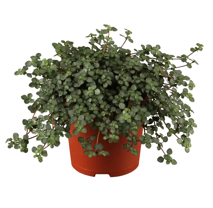 Die rundlichen Blätter der Kanonierblume (Pilea glauca) stehen für natürliche Lebendigkeit. Ihre grau-grüne Farbe setzt dabei farbliche Akzente. Ihr ausladender, hängender und rankender Wuchs kommt besonders gut im Ampeltopf zur Geltung, dabei wird sie etwa 20 cm hoch bzw. lang und etwa 50 cm breit. Um die Faszination der Kanonierblume voll zu genießen, solltest du ihr einen halbschattigen Standort geben. Sie bevorzugt außerdem eine durchlässige, humose und lockere Erde. Ihr Wasserbedarf ist moderat, das heißt, die Erde darf auch mal antrocknen, bevor du wieder gießt. Achte darauf, dass überschüssiges Wasser gut abfließen kann, um Staunässe und Wurzelschäden zu vermeiden.