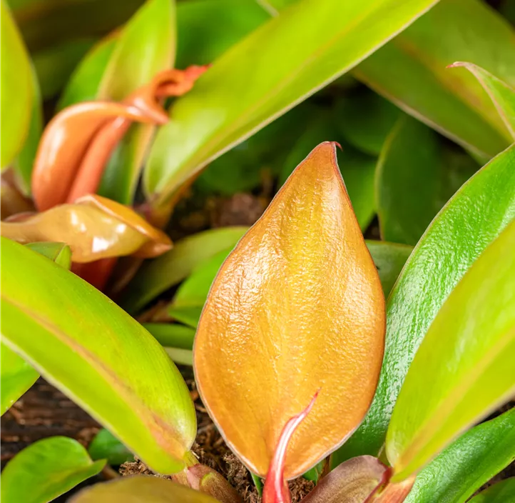 Sein kriechender und rankender Wuchs kommt besonders gut im Ampeltopf zur Geltung, dabei wird er etwa 2 m hoch bzw. lang und etwa 1 m breit. Um die Faszination des Baumfreunds 'Prince of Orange' genießen zu können, solltest du beachten, dass er kein direktes Sonnenlicht verträgt. Milde Morgen- oder Abendsonne sind noch in Ordnung, am besten ist aber indirektes Licht. Ebenso bevorzugt er eine durchlässige und lockere Erde. Sein Wasserbedarf ist moderat, das heißt, die Erde darf auch schon mal antrocknen, bevor du wieder gießt. Überschüssiges Wasser muss jedoch gut abfließen können, da es sonst zu Staunässe kommen kann und die Wurzeln in Mitleidenschaft gezogen werden.