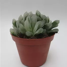 Mit ihrem rosettenartigen und sukkulenten Wuchs ist die Haworthia 'Big Band' (Haworthia fasciata) eine wirklich charaktervolle Pflanze. Besonders ihre dickfleischigen, grün-weißen Blätter sind ein Hingucker. Auch die cremeweißen, röhrenförmigen Blüten sind für sich ein interessanter Anblick. Als Zimmerpflanze macht sie eine gute Figur und ist auch im Wintergarten eine Bereicherung. Damit sich die Haworthia 'Big Band' wohlfühlt, solltest du ihr einen sonnigen Standort geben. Ebenso bevorzugt sie eine durchlässige, lockere und nährstoffreiche Erde. Längere Pausen zwischen dem Gießen sind kein Problem für sie, da ihr Wasserbedarf gering ist.