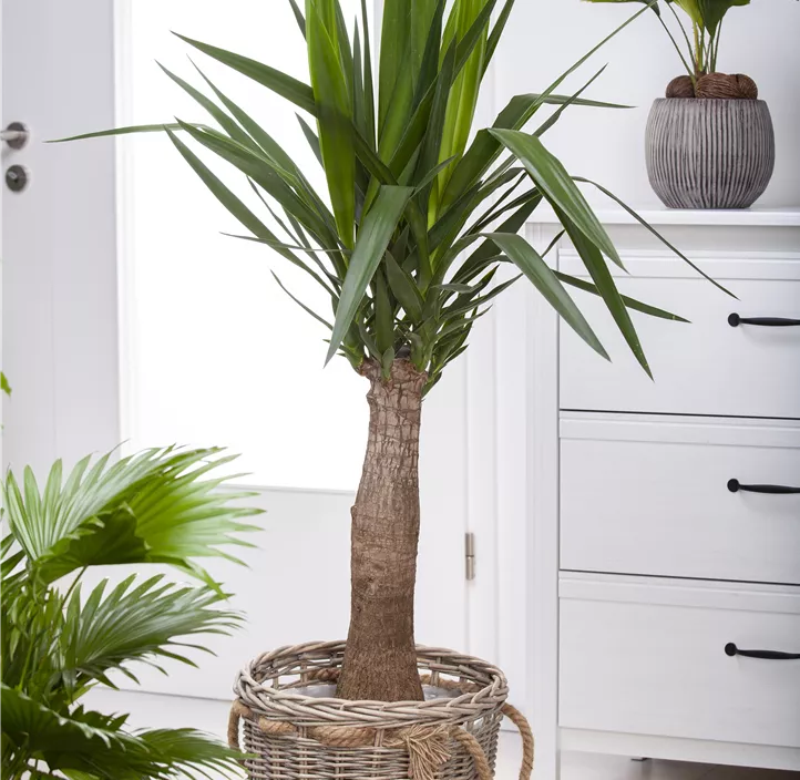 Mit ihrem aufrechten Wuchs macht sie eine gute Figur, dabei wird sie etwa 2 m hoch und etwa 50 cm breit. Um die Faszination der Palmlilie 'Maya Tree' genießen zu können, solltest du ihr einen sonnigen Standort geben. Ebenso bevorzugt sie eine durchlässige und humose Erde. Ihr Wasserbedarf ist moderat, das heißt, die Erde darf auch schon mal antrocknen, bevor du wieder gießt. Überschüssiges Wasser muss jedoch gut abfließen können, da es sonst zu Staunässe kommen kann und die Wurzeln in Mitleidenschaft gezogen werden.