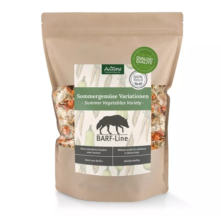 Sonnig und gesund, so präsentiert sich die BARF-Line Sommergemüse Variation von AniForte®. Ideal geeignet für alle, die mit der BARF-Methode füttern, ist dieses Ergänzungsfutter eine echte Bereicherung auf dem Hundefutter-Markt.